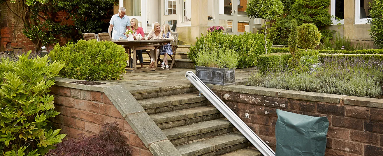 Le Acorn 130 extérieur est conçu pour s’adapter à toutes les configurations d’escaliers extérieurs, qu’il soit proche d’un mur ou non. Grâce à sa conception compacte, son encombrement est faible, permettant ainsi un accès dégagé pour les autres membres de la famille.
