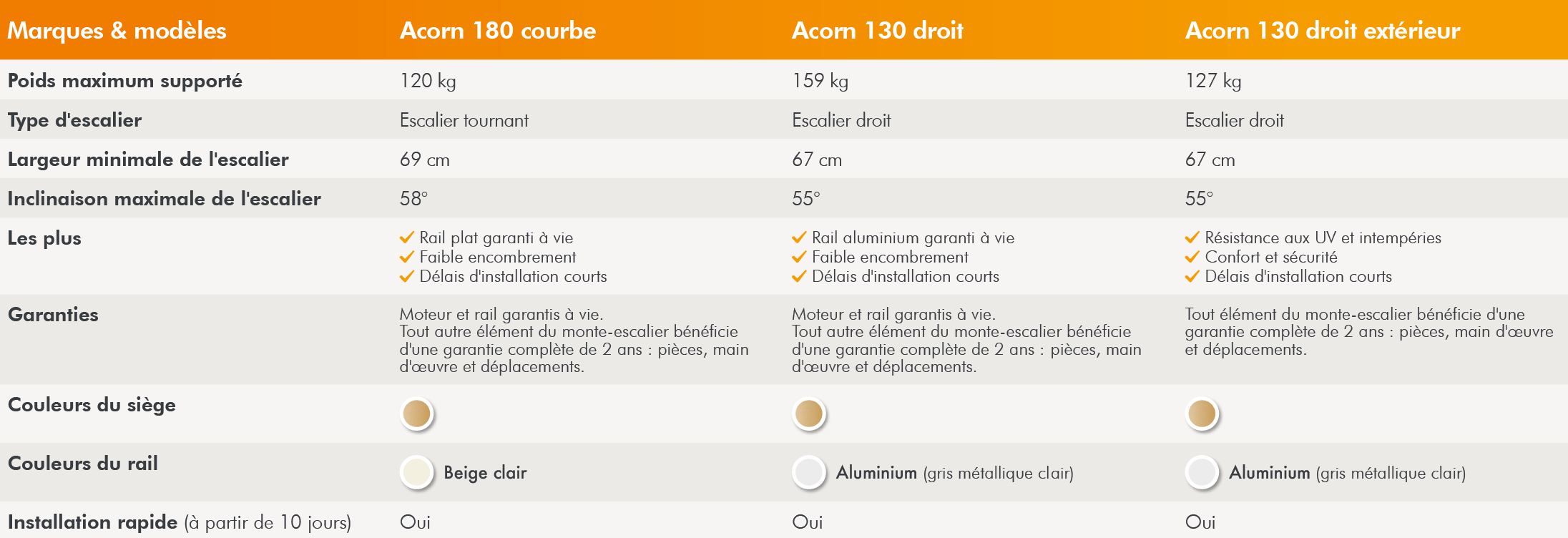 Les monte-escaliers Acorn possèdent de nombreux atouts. Ils sont conçus pour faciliter vos déplacements quotidiens avec un maximum de sécurité et de confort. Discrets et peu encombrants, ils peuvent également être installés dans des escaliers étroits.