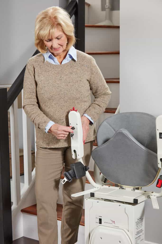 Confortable, il est équipé d’un siège ergonomique et tournant en bas d’escaliers et sur le palier, afin de quitter le monte-escaliers dans efforts. Il est conçu pour accueillir jusqu’à 160 kilos.