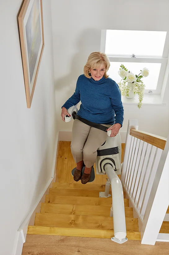 Le monte-escaliers Platinum Ultimate conserve un maximum d’espace disponible dans l’escalier. Il est conçu pour s’adapter au monte escalier les plus étroits et les plus raides.