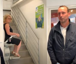 En vidéo : Présentation par l’agence Générale des Services dans laquelle Accédons a mis à disposition un monte-escalier.